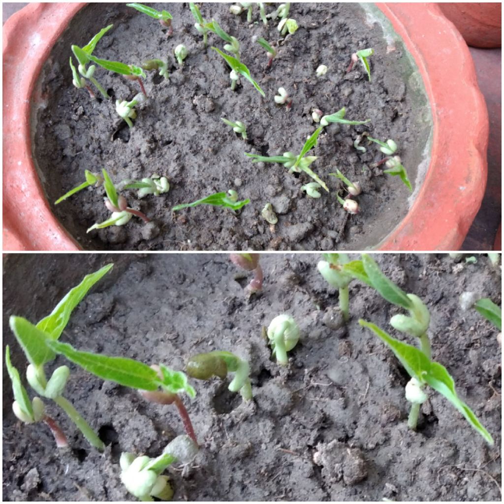 So, the seeds were busy going through the different stages of germination. Absorbing moist, bursting of coats, roots going down and shoots pushing themselves up in search of sunlight.