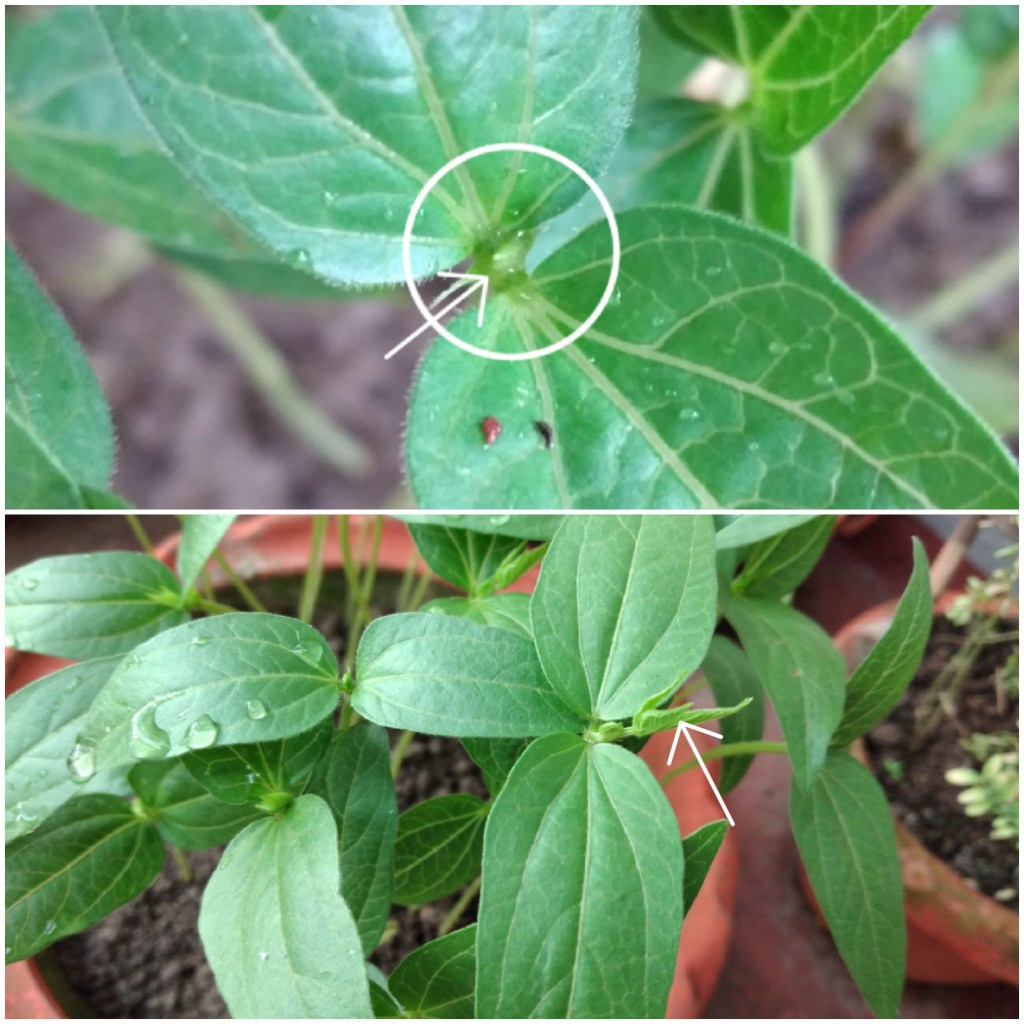 15 days later small buds were noticed in between the true leaves in all the plants.
