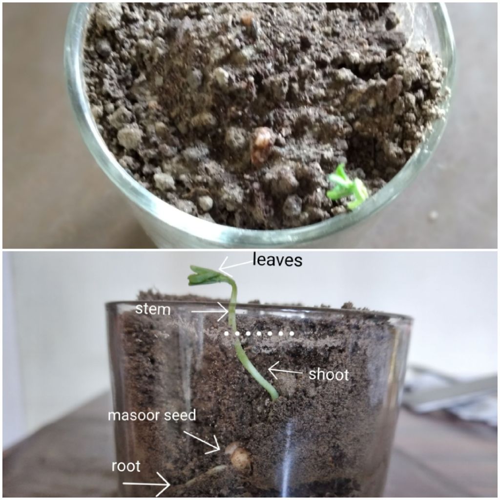 In Experiment 2 we saw the germination of the seeds inside the soil. Now we will go back to Experiment 1 and follow the growth of the plant in pot from where we left.
