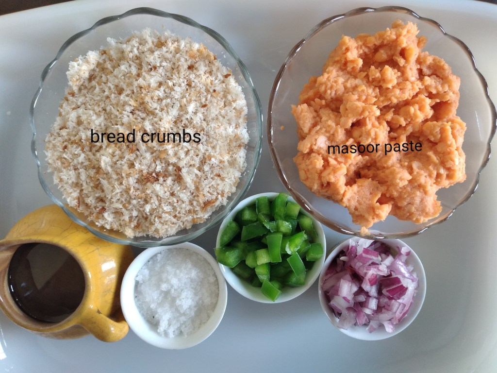 1. Mix all the ingredients except the bread crumbs. Use the bread crumbs little at a time if too moist.  It is mainly for binding the patties.