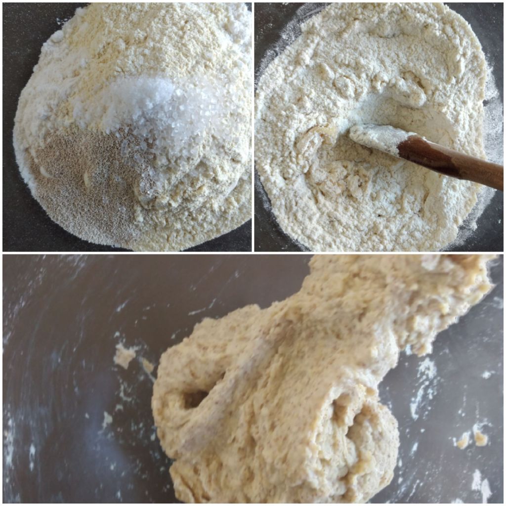1. Mix all the dry ingredients in a bowl.  Add the oil and mix it well.  Add the water gradually to make the dough sticky.