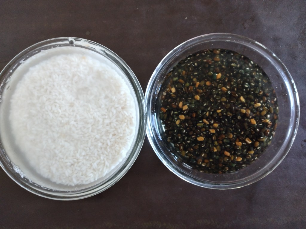 - Wash rice and sabut urad separately. Wash few methi and add them to the urad. Soak them for 4 -6 hours.