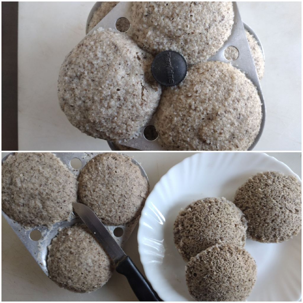 6. Take out the idli stand from the cooker. Carefully remove the idlis from the moulds and sever hot with chutney.