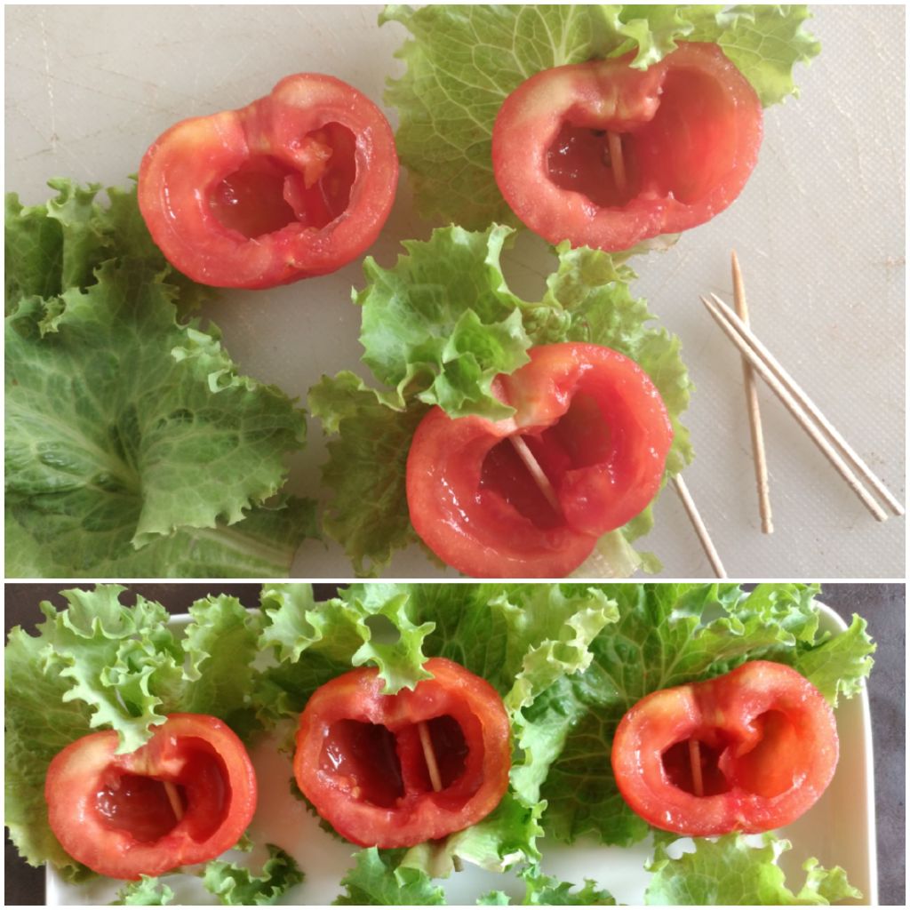 9. Wrap around lettuce leaves on each tomato halves with the help of wooden picks.