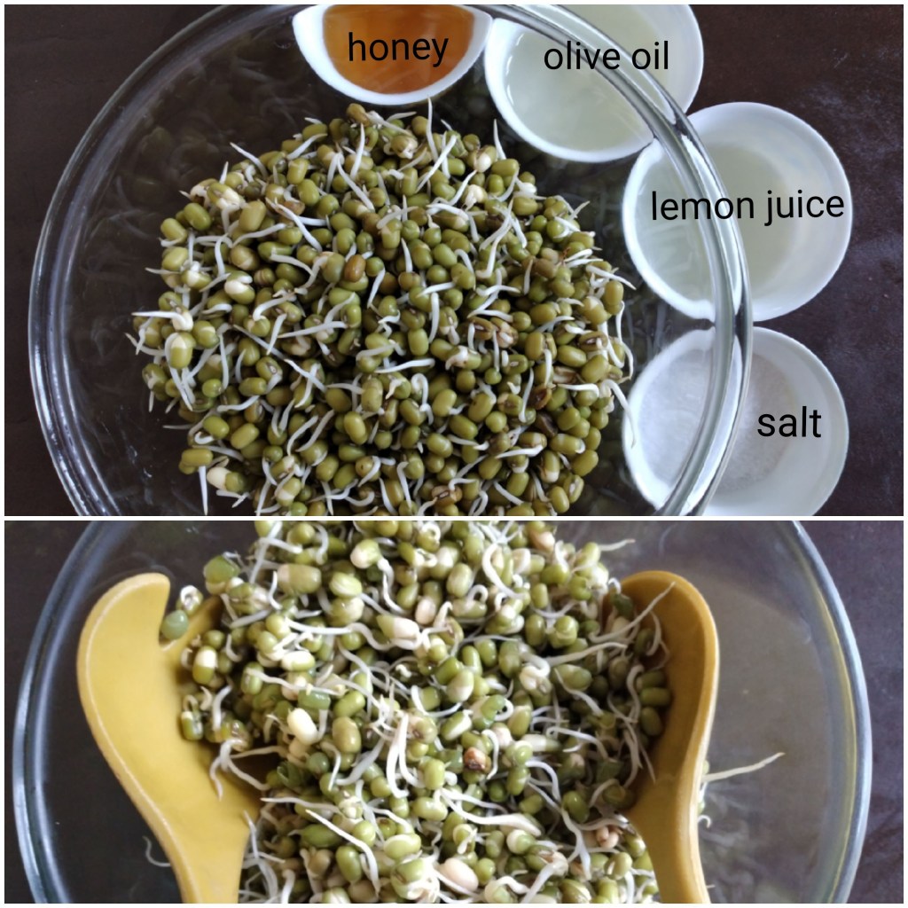 Moong takes time to sprout, so start the salad 2 days prior to your need.  Sprouted moong can be kept in the fridge for a day or two.