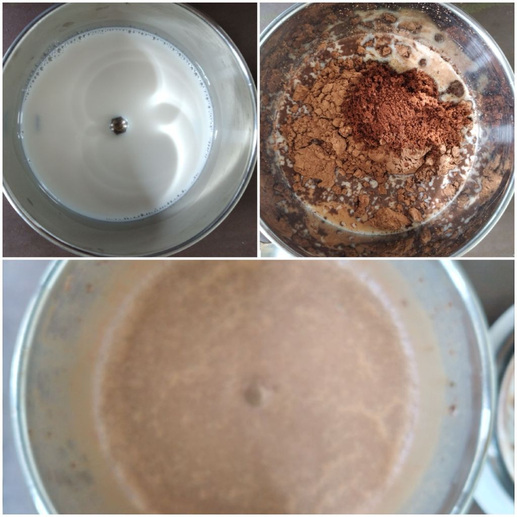 3. In a blender, blend cocoa and coffee powder with ¼ teacup of milk. Set it aside.