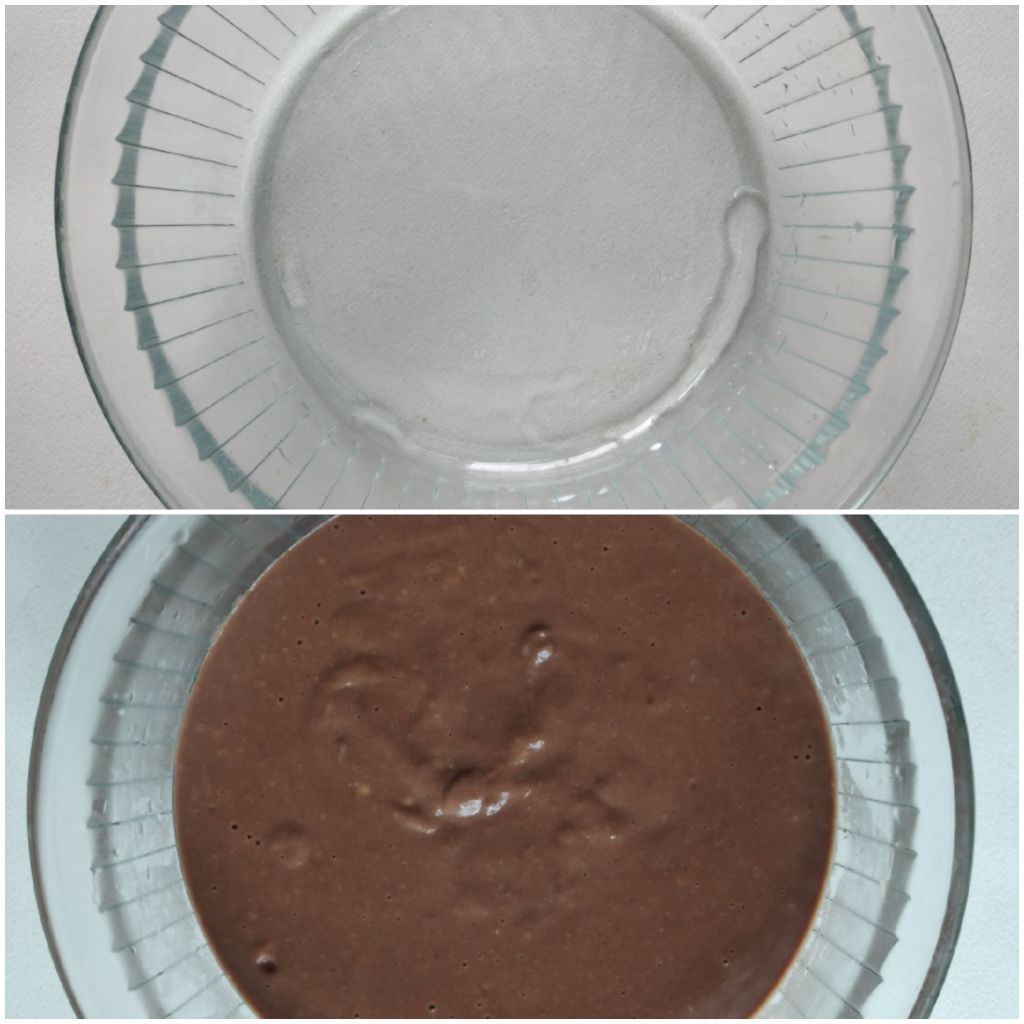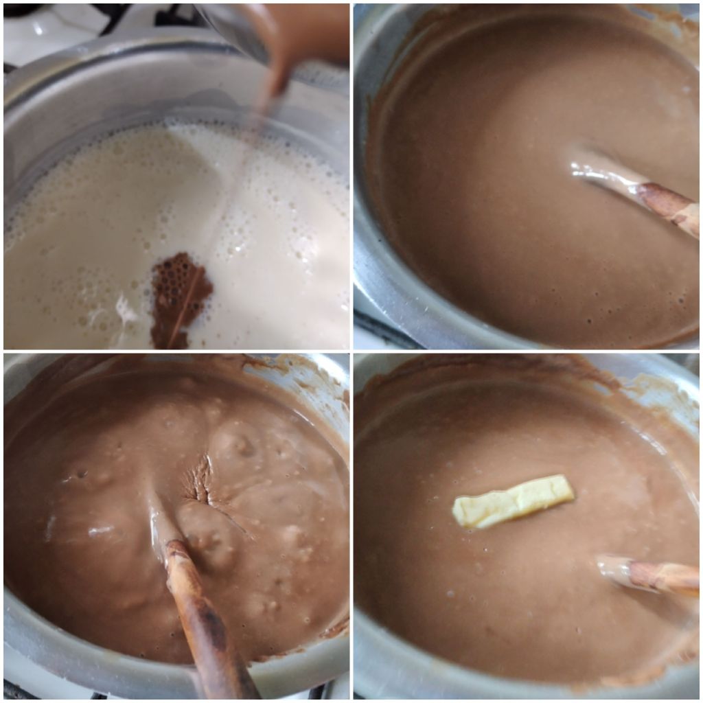 7. Add the cocoa-coffee liquid to the cooked moong mixture and mix well.