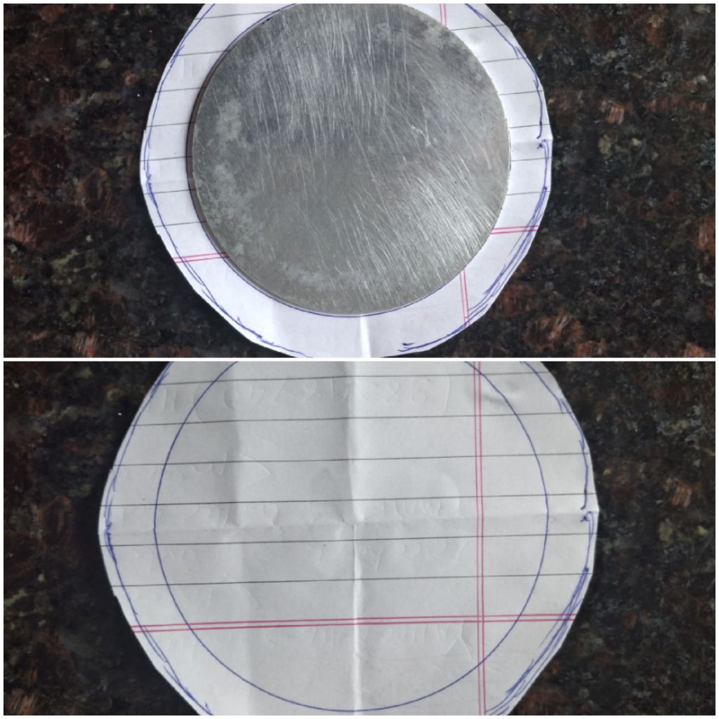 Take the measurement of the base of the flan case on a piece paper. Make the round 1 cm wider and cut out the circle.