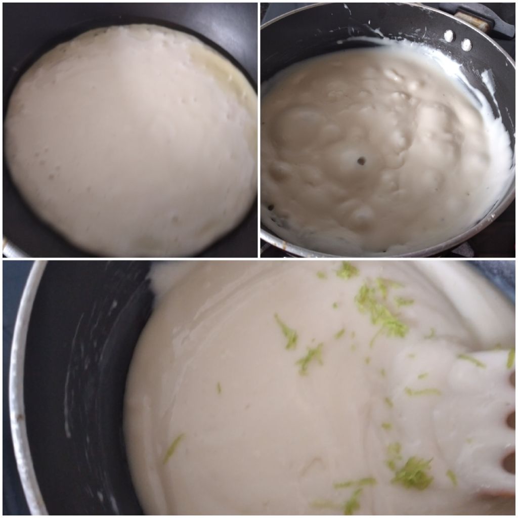 Heat a pan over medium heat and add the butter. Pour the dal mixture into the pan. Cook till it begins to thicken and boils. Add the lemon rind and remove it from the heat.