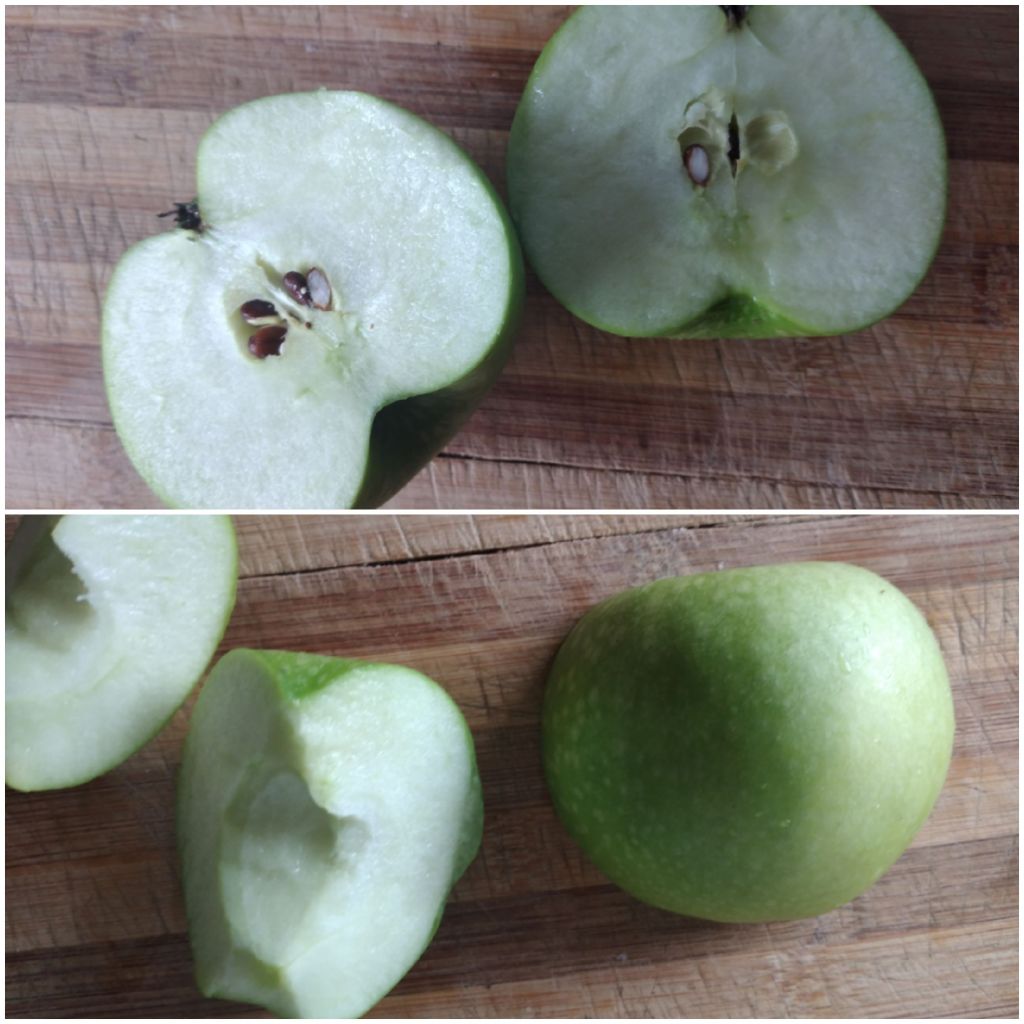 3. With a potato peeler or a sharp knife slice the apple vertically as thin as possible and arrange them as the petals of a rose as shown in the picture. Repeat the same for the other case.