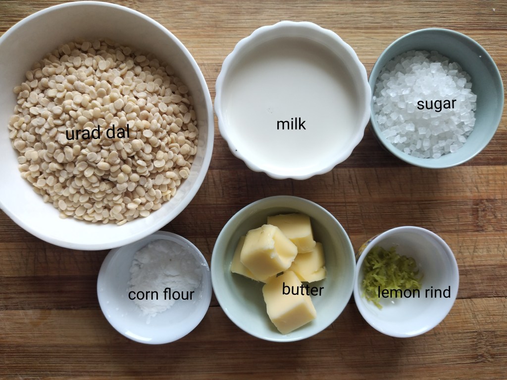 Grind the dal with milk to a fine mixture. Add corn flour and sugar during grinding.