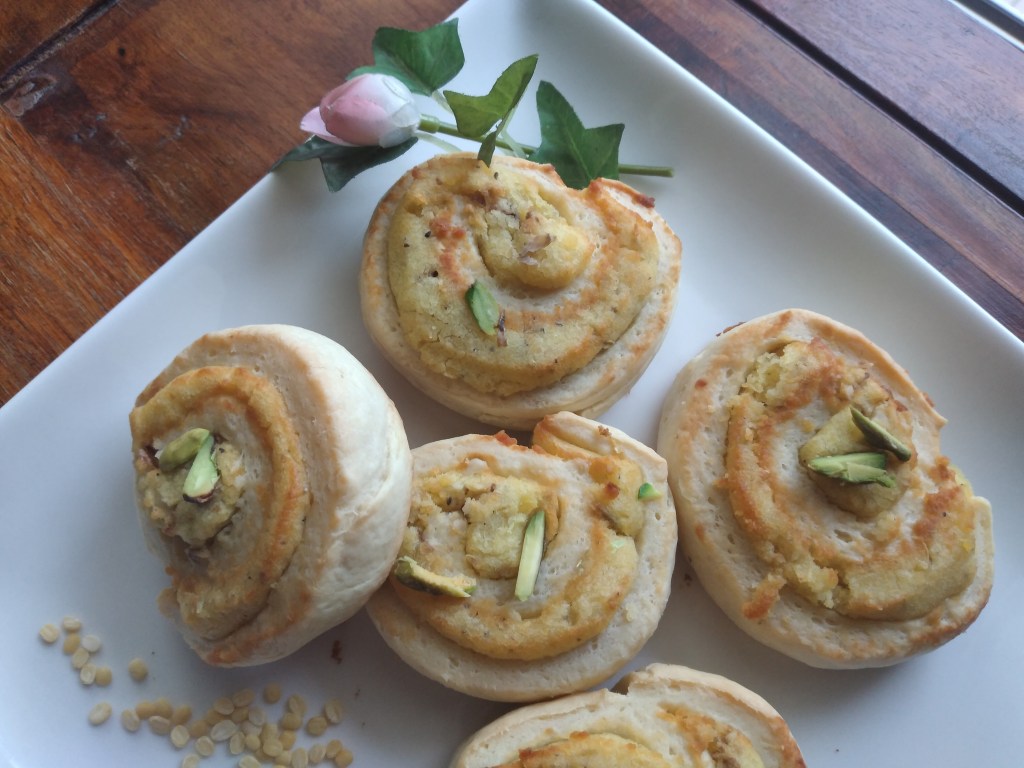 The nutty flavour of moong dal beautifully blends with the cardamom giving a unique taste to the roll. It is easy to make. And it is nutritious.