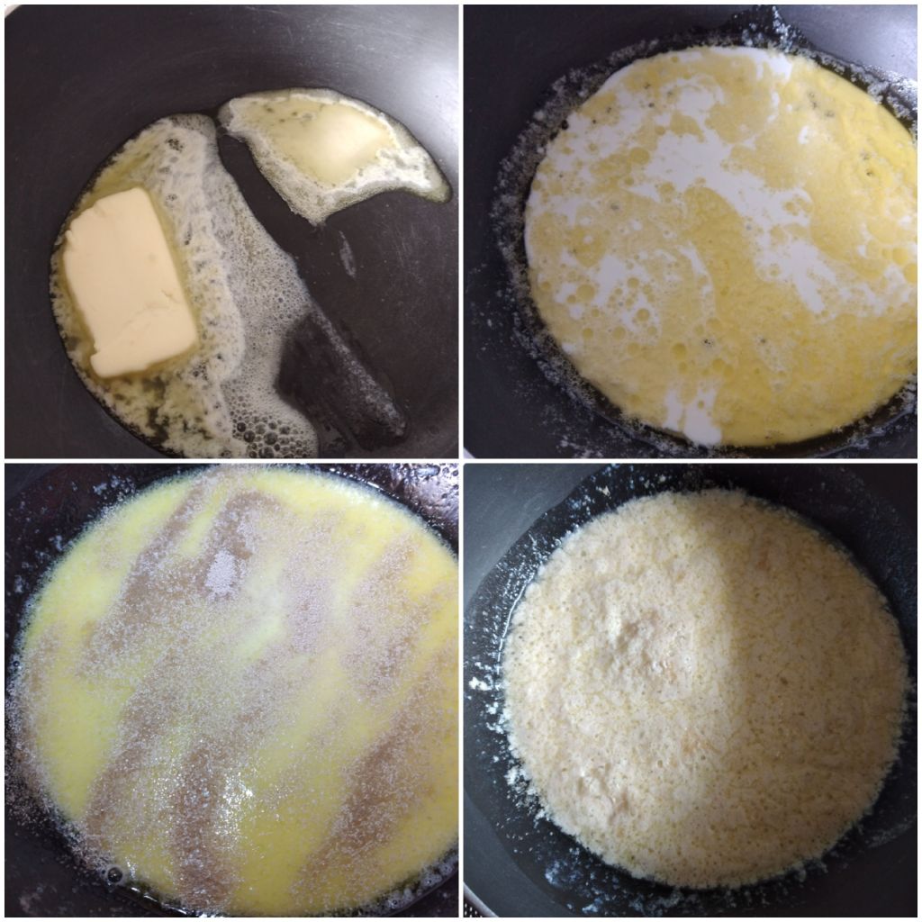 2. Add milk and sugar to the butter and sprinkle yeast over it.