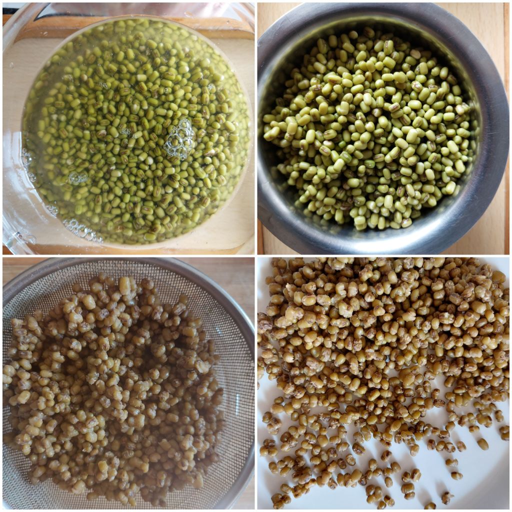 7. Add the cooked moong. Mix it well and remove it from the heat.