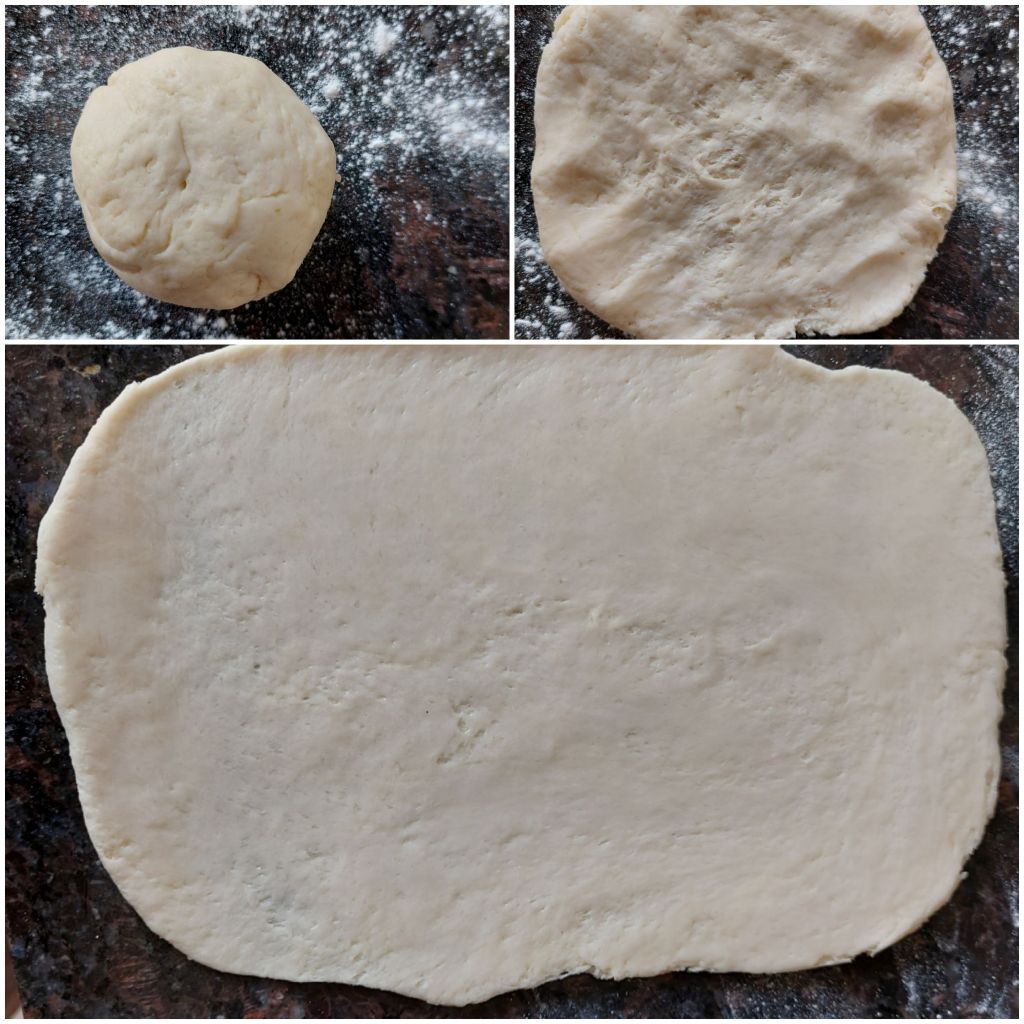 9. Take 1 ball , flatten it and then roll out to a 5” x 9” rectangular shape.