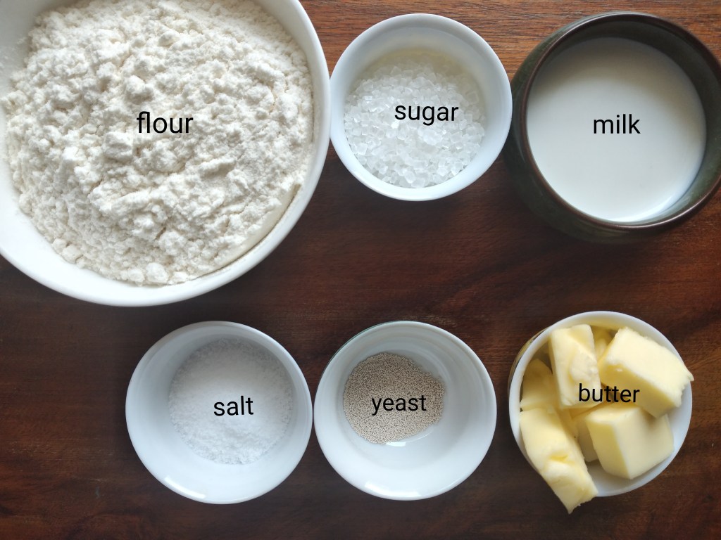 - Add milk and sugar to the butter and sprinkle yeast over it.