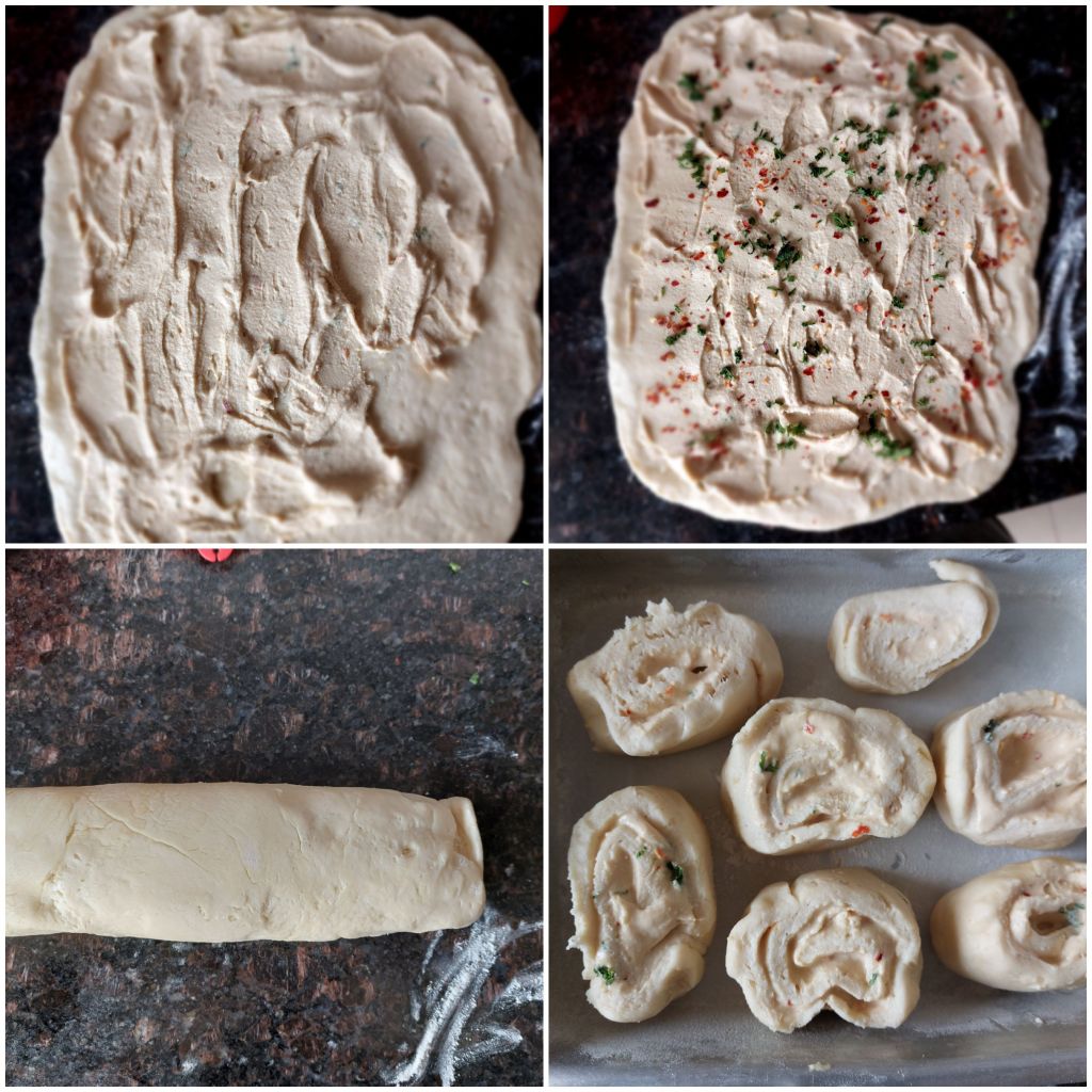 This delicious, soft and spicy bread roll is the result of an experiment with the leftover hummus. It is worth trying out once.