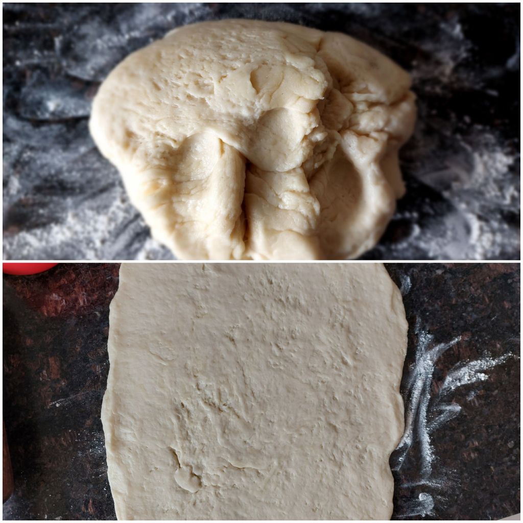 7. Roll out the dough into a rectangular shape approximately to 7 x 11 inches.