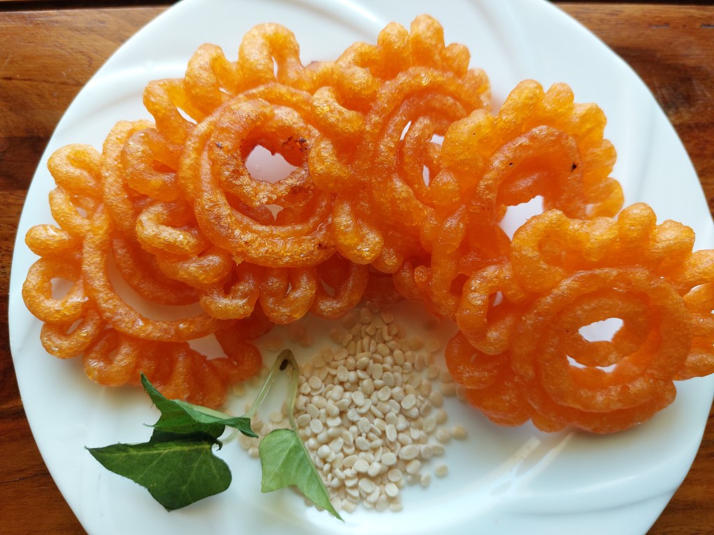 Imarti is an Indian sweet dish made of fermented urad dal batter, fried and dipped in sugar syrup. It is believed to have evolved in Mughal Kitchen.