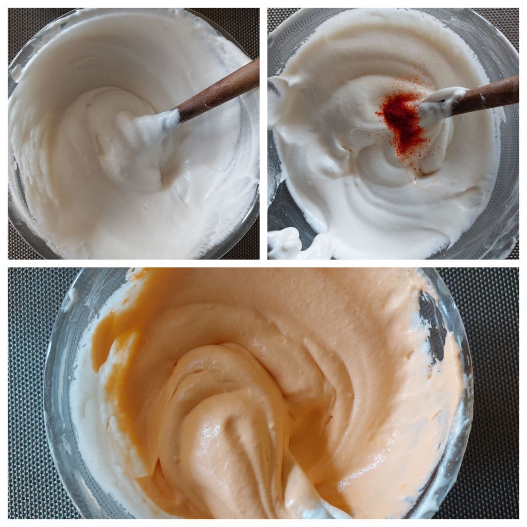 5. Add ¼ tsp of the colour and the corn flour and mix well.