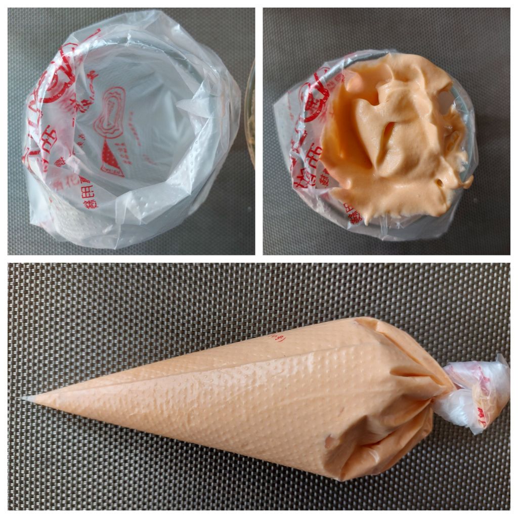 8. Take an icing bag in a glass as shown in the picture and fill it up with the urad mixture and keep it aside.