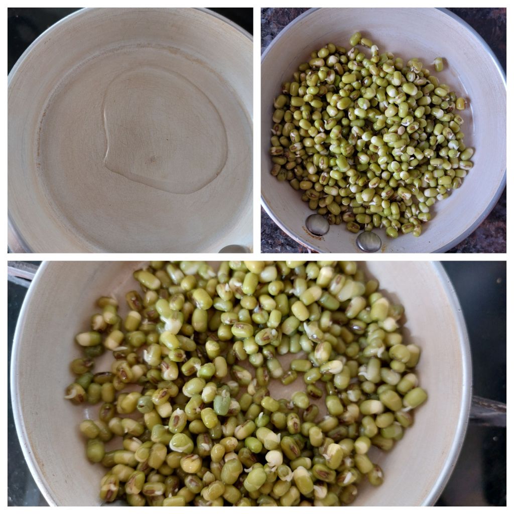 5. Saute the moong with a pinch of salt and keep it aside.