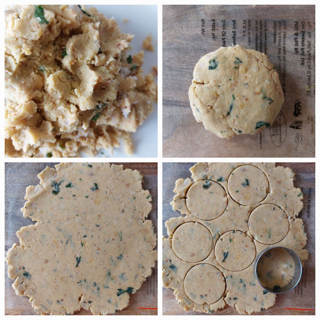 6. Form dough with the mixture and roll it out to about ½ cm thickness.