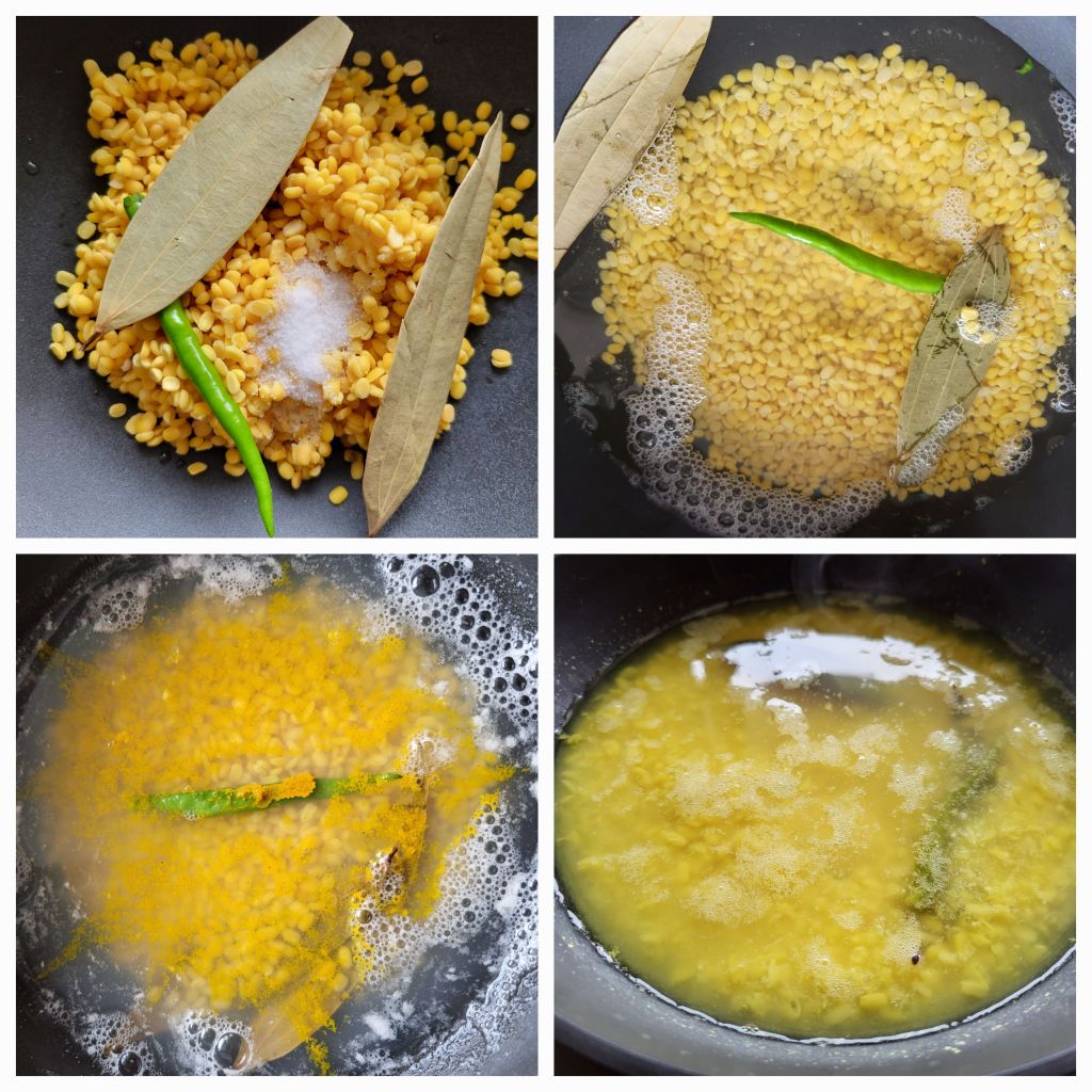5. Lower the heat and cook dal cook over low heat until cooked.  It will take about 10 to 15 minutes