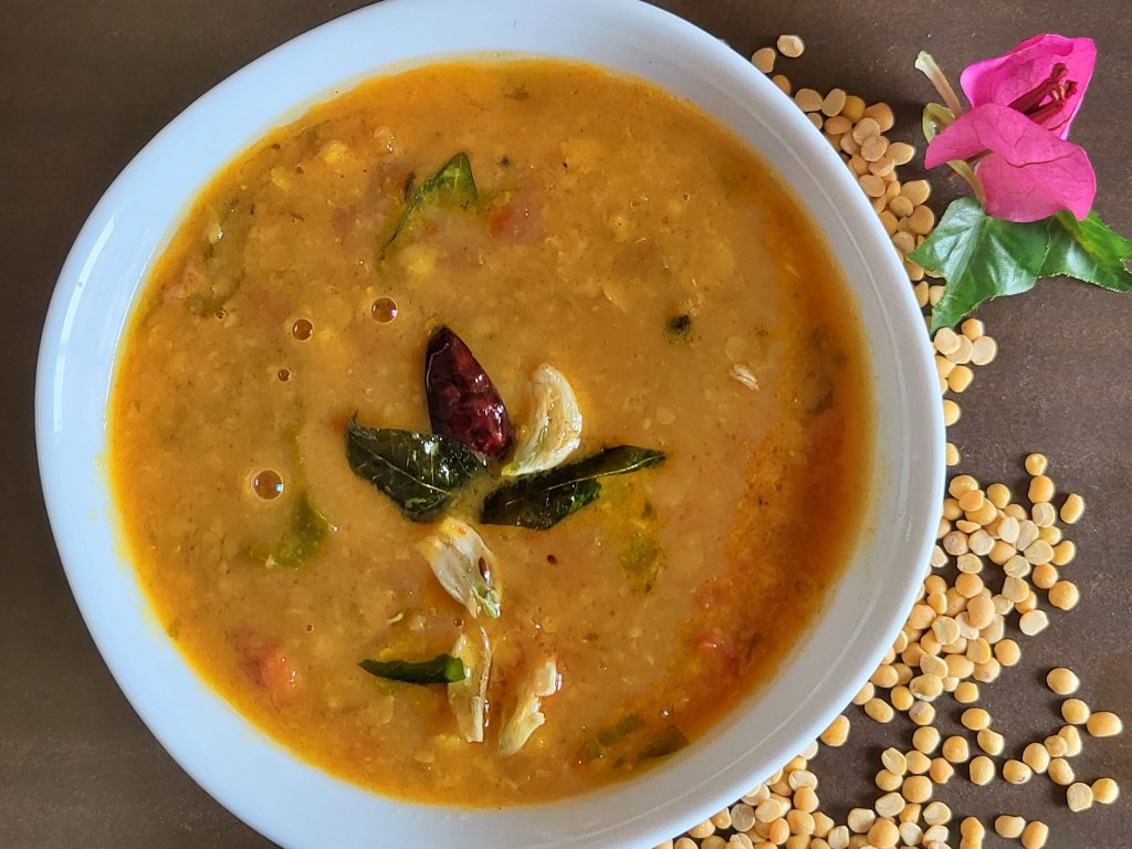 19. In a separate pan, crisp-fry curry leaves, then add them to the dal.