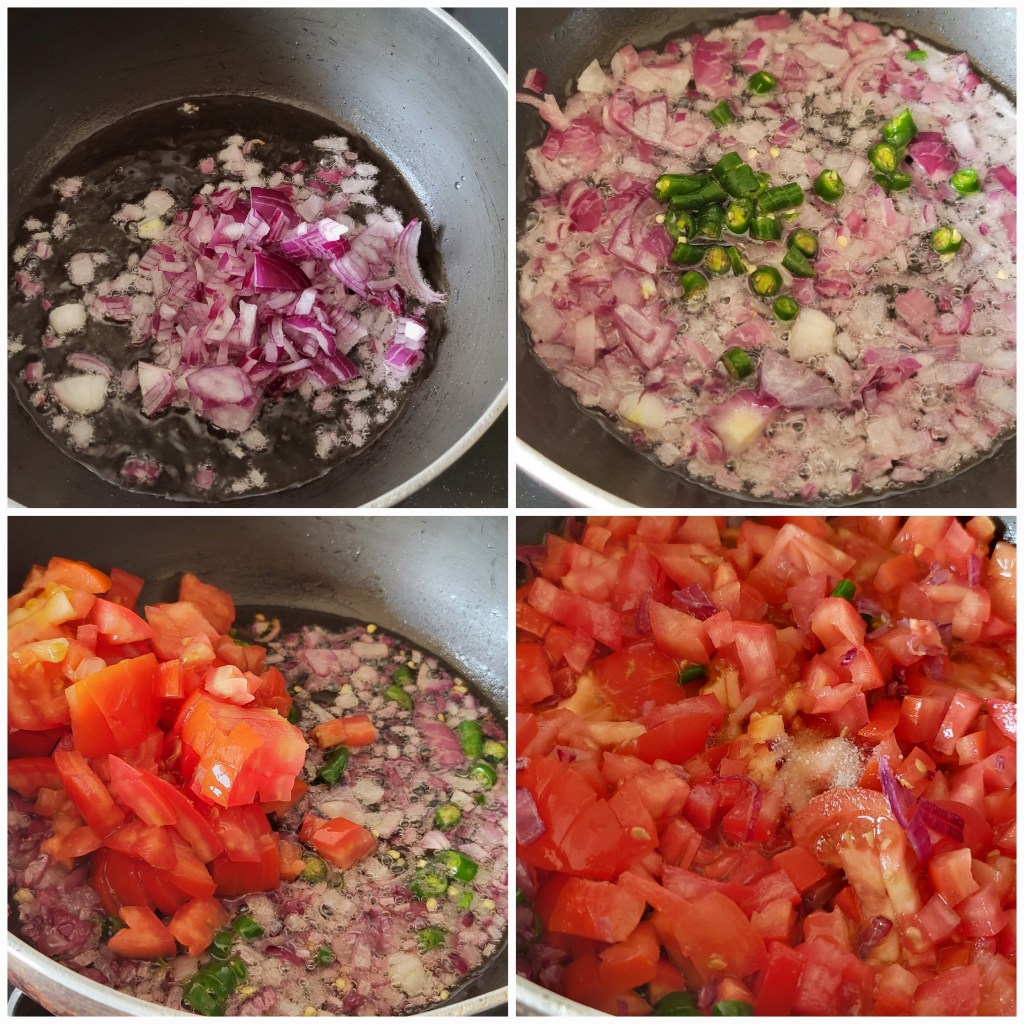 6. Finely chop washed chilies, tomatoes, onion and coriander leaves.