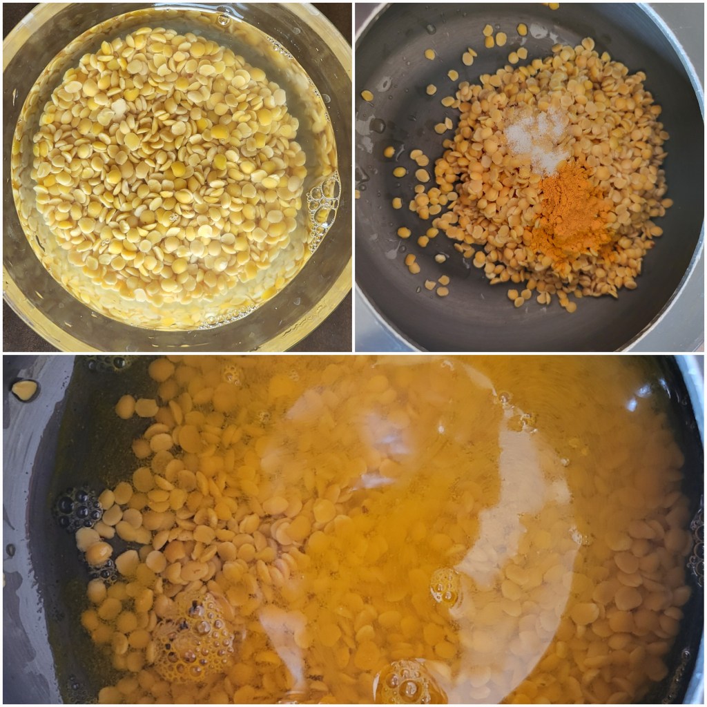 3. Add salt and turmeric.  Add 1 cup of warm water.