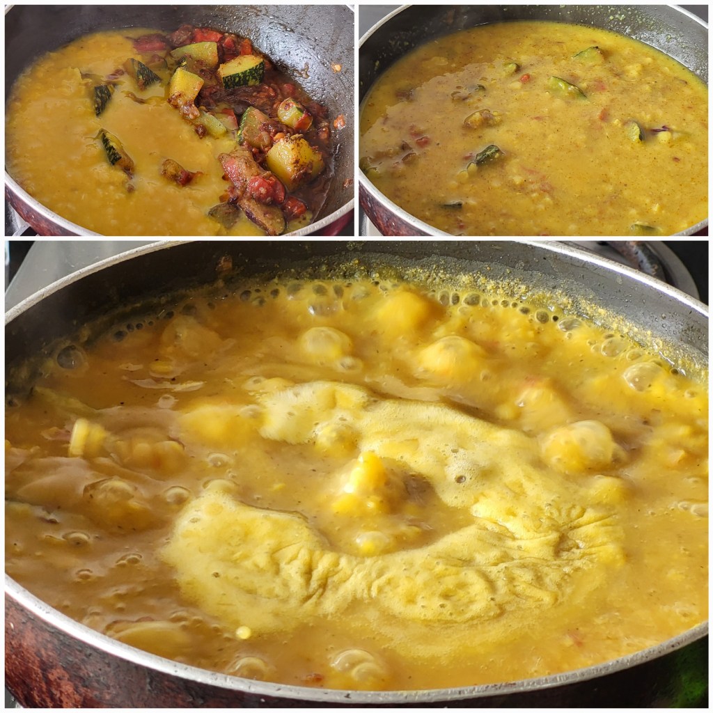 To bring out the full flavor of the dal, we’ll sauté the vegetables briefly. Simply boiling them can result in a slightly bland taste.