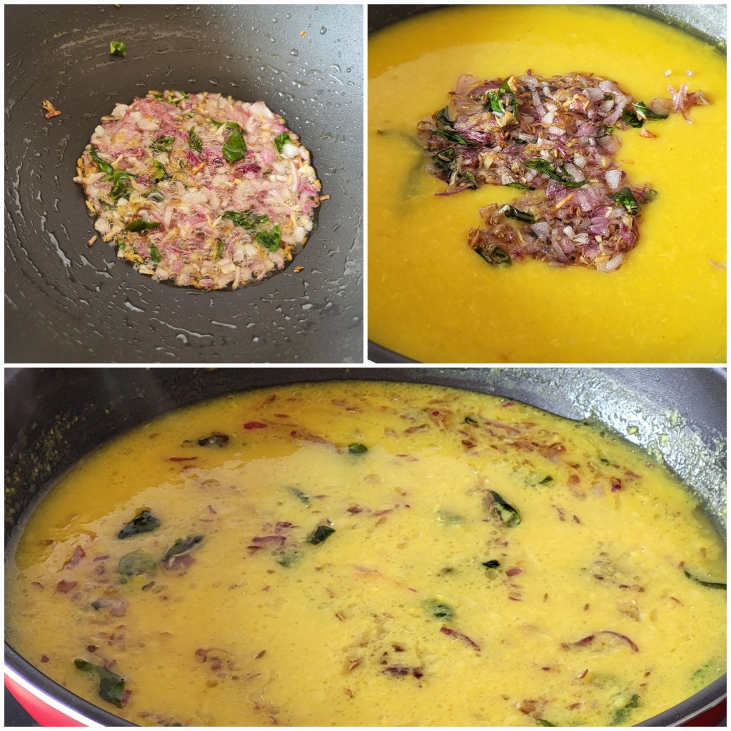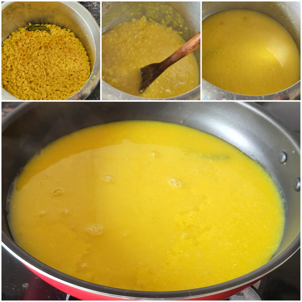 14. Transfer the dal to a larger pan and bring it to a boil.