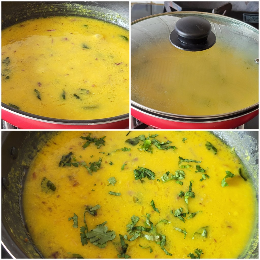 25. Uncover the pan and garnish with chopped coriander leaves.