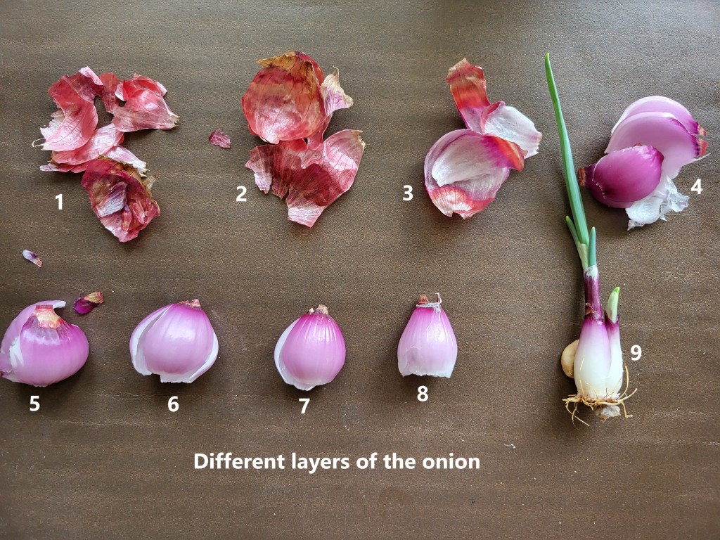 Upon gently peeling away several layers of the dry papery and fleshy leaves, we reached the 8th layer, revealing the two hidden sprouts beneath (9).