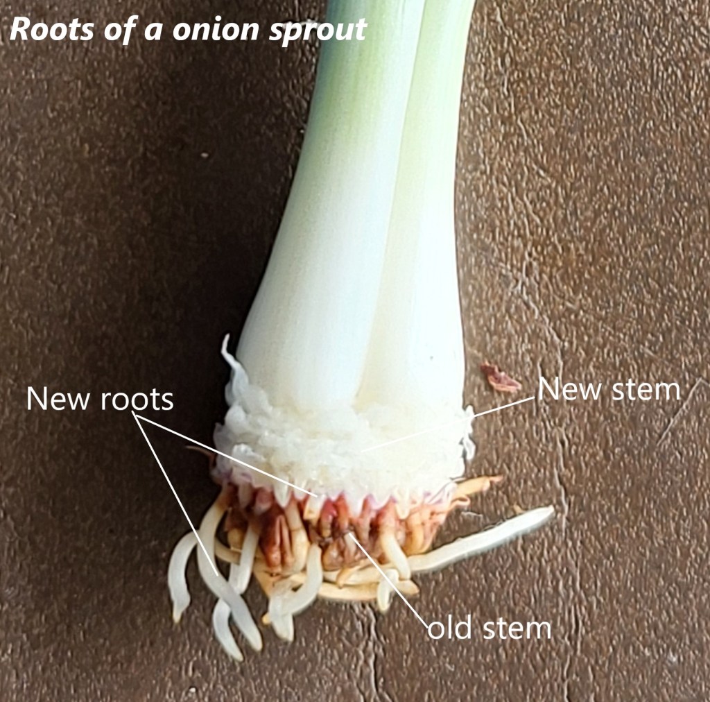 The roots develop from the base of the new stem, distinguishing them from the older stem. Initially delicate and white, the roots increase in number over time, spreading horizontally to anchor the plant and absorb water and minerals.