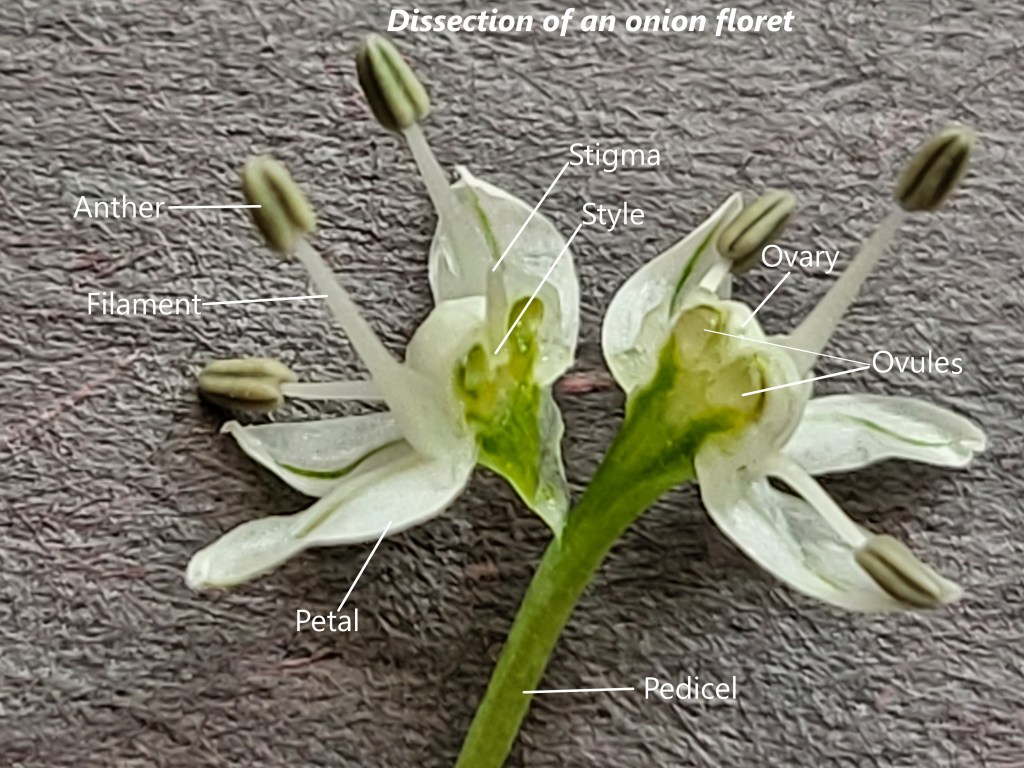 Onion Floret’s Ovary. We didn’t notice the onion floret’s ovary had three cells until we dissected it. This tiny detail reveals the intricate design of the flower.