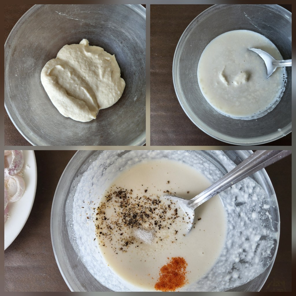3. Mix the dal paste with water to achieve a pancake-like consistency.