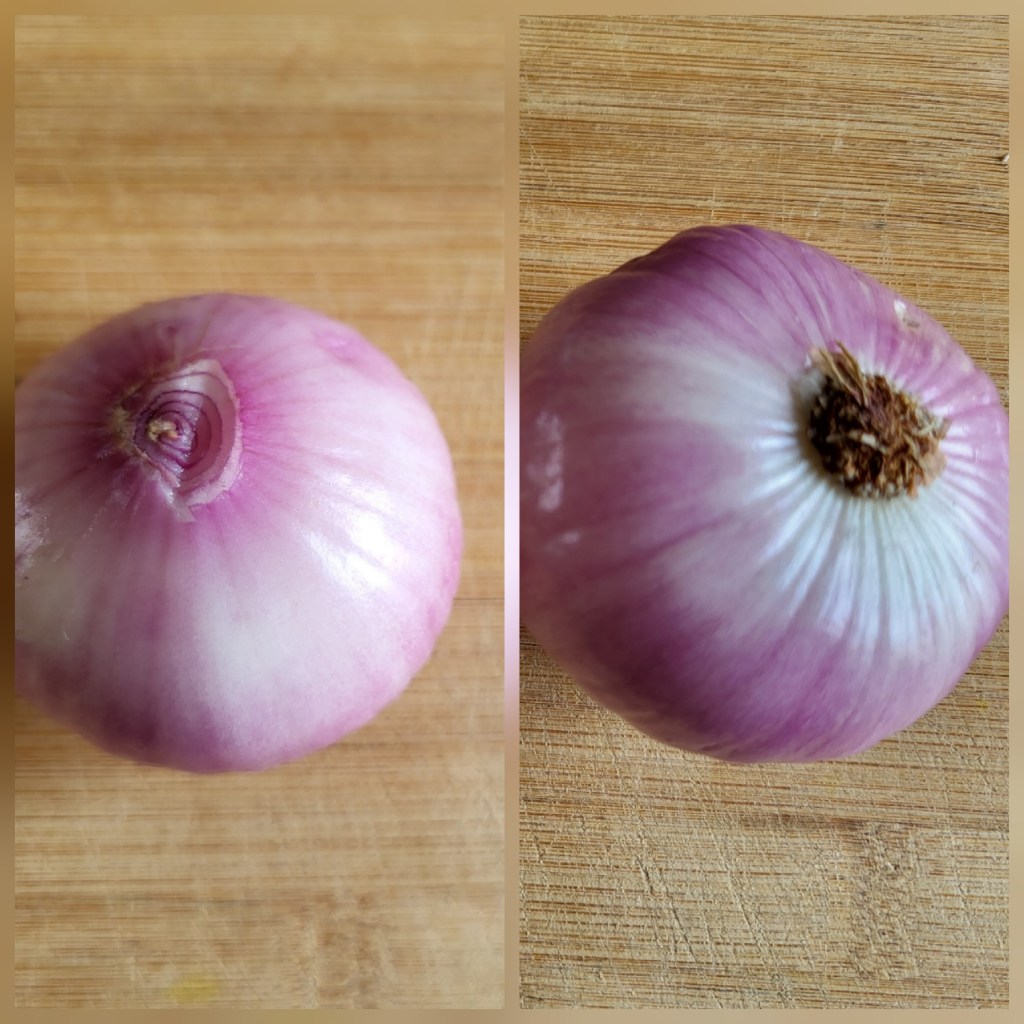 5. Wash, peel, and cut off the top of the onion, leaving the root end intact.