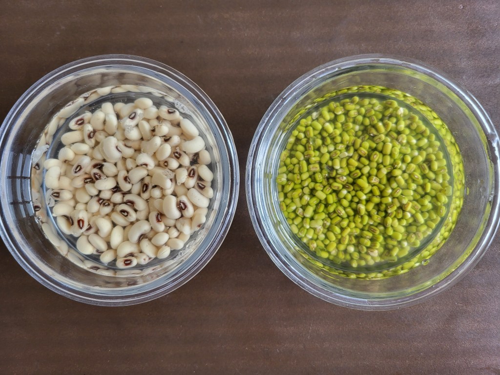 3. Black-eyed beans take around 30 minutes to cook, while mung beans are done in about 10 minutes.