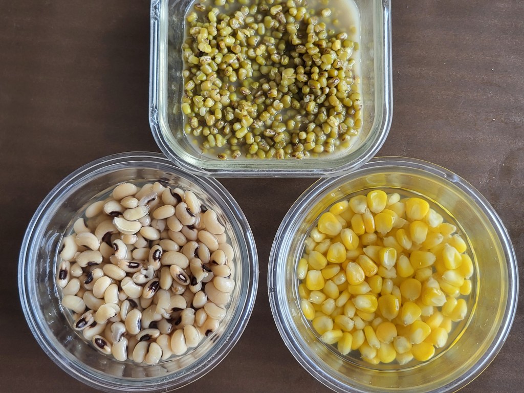 5. Cook the corn separately and transfer it to another bowl with its cooking water as well.