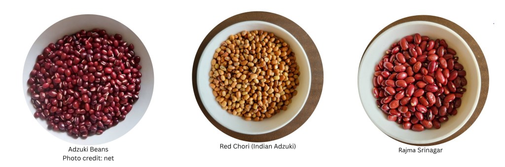 We will use Rajma Srinagar as a substitute for Adzuki beans, as it’s the nearest equivalent.