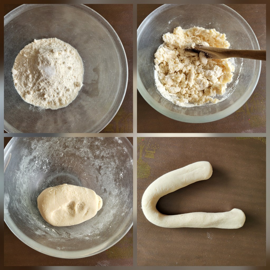 11. Gradually add water, stirring with a wooden spoon until a dough forms.