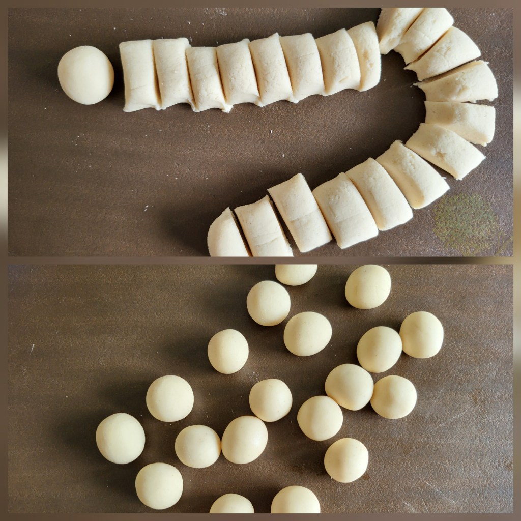 13. Divide the dough into small balls, about the size of a marble.