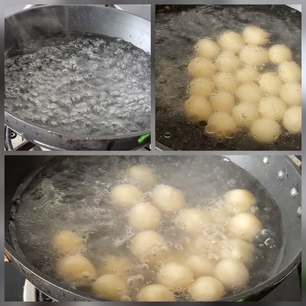14. Cook the glutinous rice flour balls in boiling water for 5-7 minutes, or until they float to the surface.