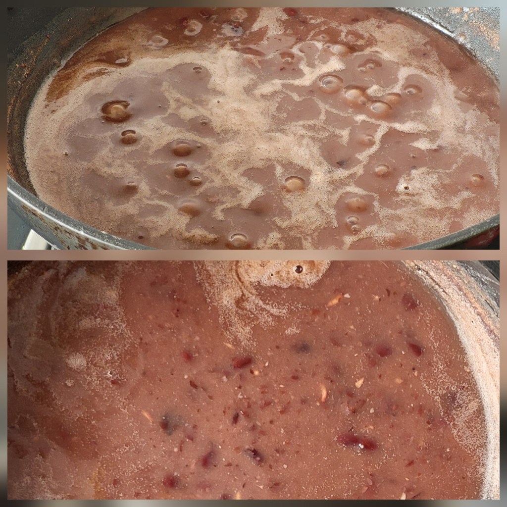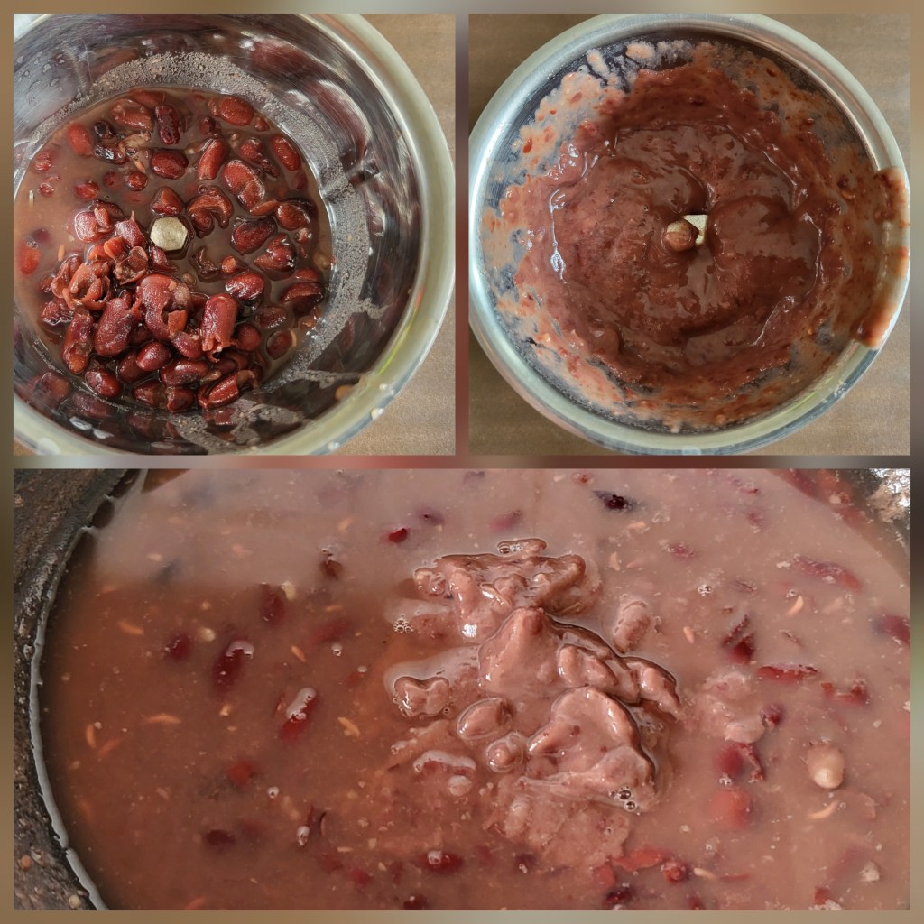 4. Take 2 tablespoons of the cooked red beans and grind them into a smooth paste.