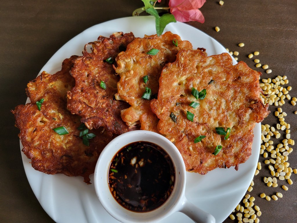Traditional Korean Mung Bean Pancakes often feature pork and egg, but we’re giving them a veggie twist for dalonthetable!