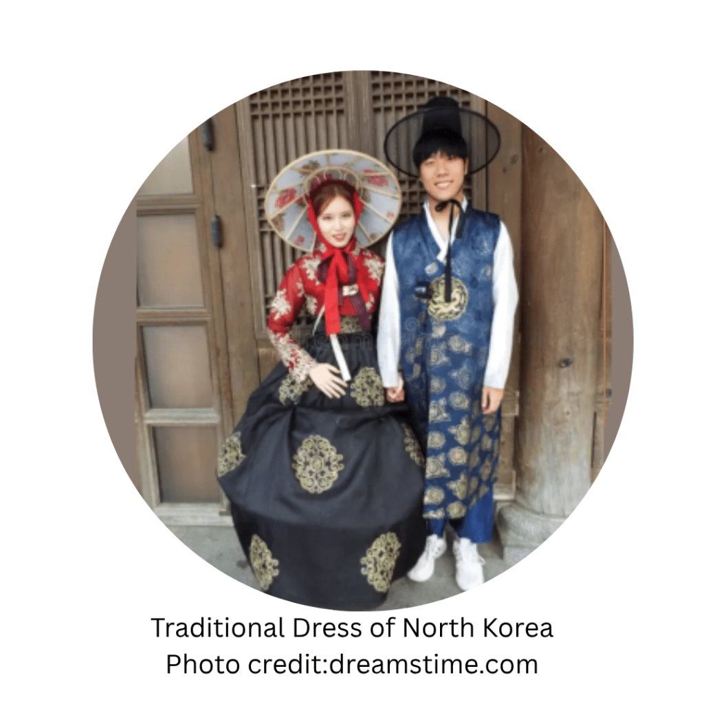 The traditional dress of North Korea is called Hanbok, similar to South Korea’s traditional attire.