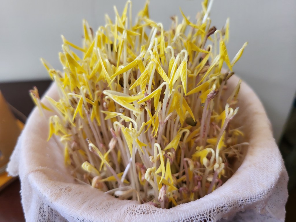 Today’ special: we are going to make a salad with our homegrown mung bean sprouts! It is a very popular South Korean side dish.