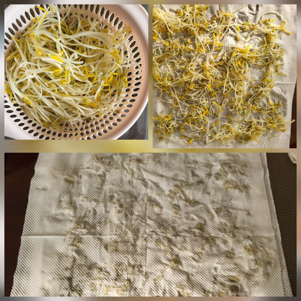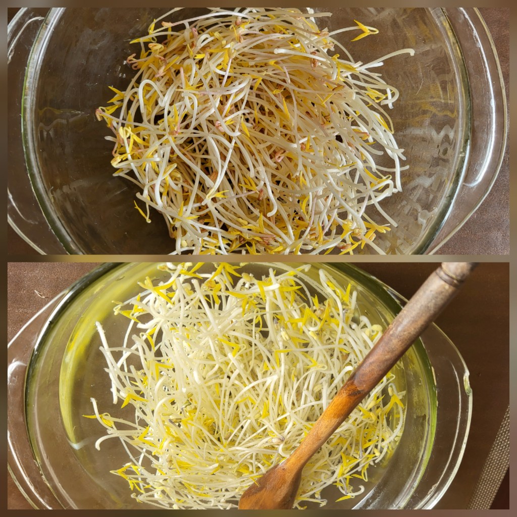 - Rinse the mung bean sprouts 2-3 times with cold water.